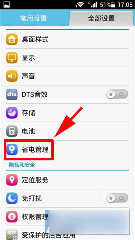 1)打开荣耀畅玩版的【设置】,选择【全部设置】栏的【省电管理】。(如下图)