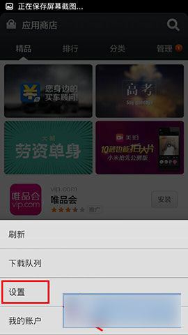 2)点击“菜单键”之后,我们可以看到“设置”的按钮,点击进去,然后在“自动升级”上点击关闭,就可以成功的关闭自动更新了。(如下图所示)