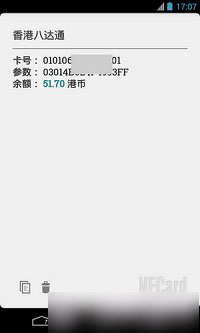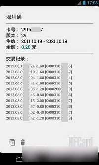已经确认可以读出的卡片有:深圳通卡(新版)、上海公交卡、香港八达通卡、北京市政一卡通(新版)、西安长安通卡、武汉城市一卡通、银联闪付卡。