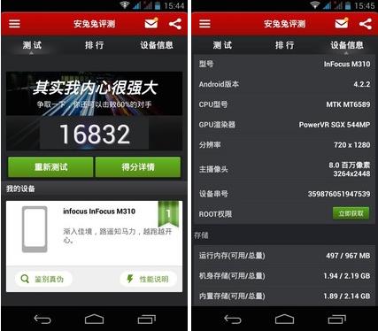 大家还记得在今年4月初,国内手机市场搭载八核处理器的产品一款接一款,并且在价格方面也已经来到了千元以内,这也不得不使四核的产品必须在价格上再次下调来迎战。而说到富可视(InFocus),很多网友或许最初接触过该厂商生产的投影设备,但今天我们并不是要评测投影机,而是富可视将在本次618活动当中重点促销的超值四核机——富可视M310。对于富可视M310性能怎么样?富可视M310跑分多少?今天小编带来于富可视M310安兔兔跑分详情。