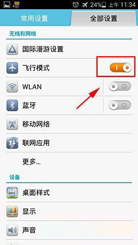 2)在“日期和时间”中,我们可以看到,不能修改日期、时间,所以返回“全部设置”,并且打开“飞行模式”。(如下图所示)