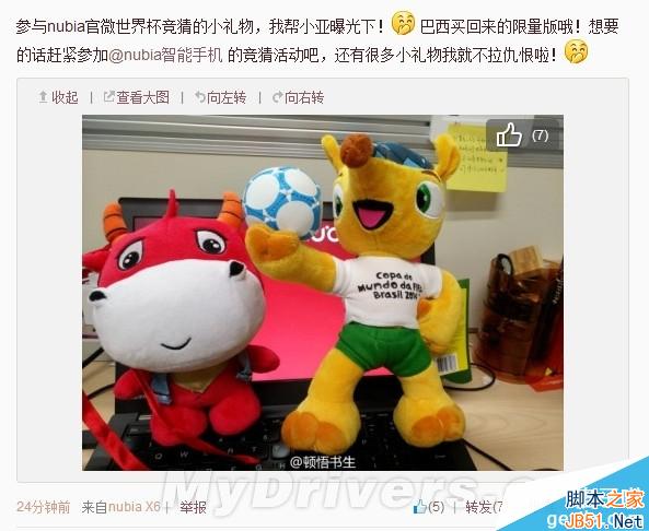 刚刚,nubia努比亚品牌经理@顿悟书生 在微博上晒出了nubia世界杯竞猜活动的小礼物,然而配图右上角的一张便签却意外泄露出nubia Z7的售价。