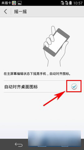 2)进入【摇一摇】界面后,勾选【自动对齐桌面图标】后面的按钮。(如下图所示)