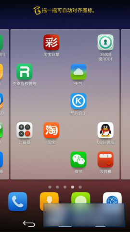4)然后摇晃手机即可自动对齐桌面图标了。(如下图所示)