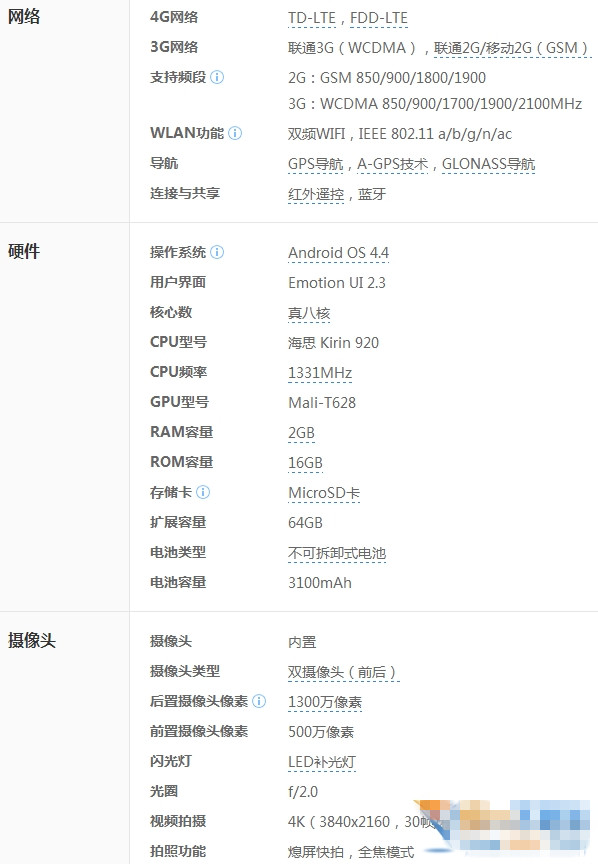 此外,该机内置3GB内存,有16GB、32GB两个存储版本,还提供了3100mAh电池(智能2.0省电技术,号称省电30%),500万像素前置+1300万像素索尼第四代BSI堆栈式后置摄像头。