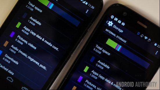 Moto E提供了4GB的机身存储空间,与Moto G的8GB和16GB相比确实有些捉襟见肘,但是相比较来说,Moto E还有一个可以弥补这个差距的地方,就是该机支持microSD卡扩展。