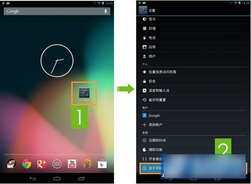 1)进入应用列表,我们看到【设置】图标,点击打开系统设置列表,在系统设置列表滑动到最下方有个【关于手机】(关于平板电脑)选项,我们点击进入。(如下图所示)