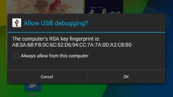 将Nexus 5或Nexus 7与电脑连接,选择PTP连接模式(通过通知栏中的通知可以选择)并在弹出是否允许USB调试对话框时选择同意。