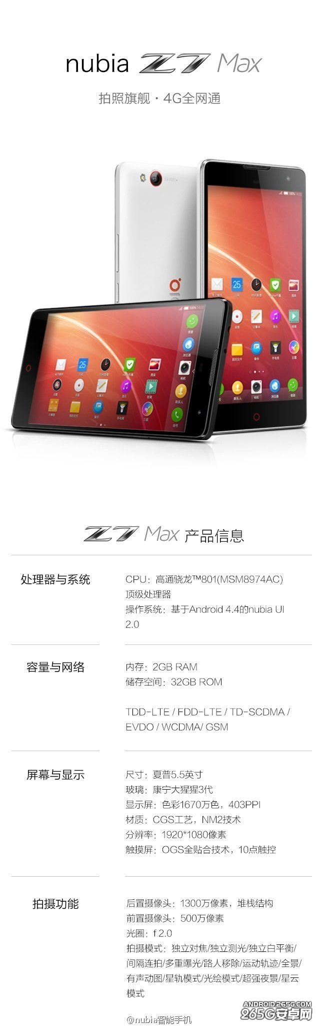 昨天下午,努比亚在北京中国电影导演中心演播大厅举办的2014努比亚新品大会上,接连发布了nubia Z7系列三款新机,它们分别是nubia Z7、nubia Z7 mini和nubia Z7 max。三款新手机均支持三网。