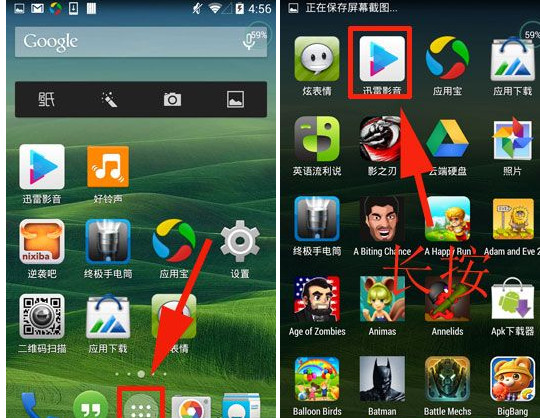 1)首先打开手机在手机桌面下方中间点击【菜单】建,进入手机【菜单】界面。然后找到你想要卸载的软件,点击长按2-3秒。(如下图所示)