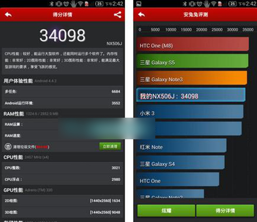 努比亚Z7跑分多少?努比亚Z7安兔兔跑分多少?