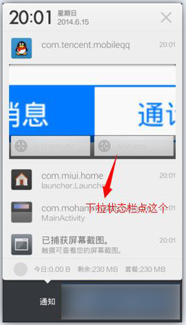 3)接着打开如图。打开手机qq,在通知栏往下拉,接着点击箭头所示文件。(如下图所示)