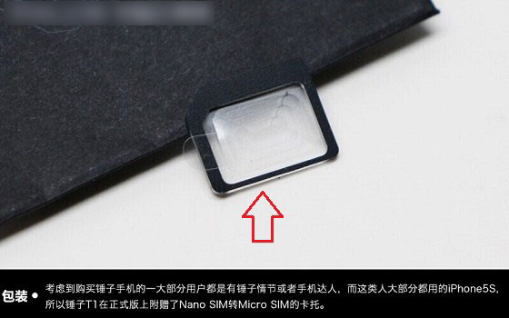 另外值得一提的是,锤子T1正式版上附赠了nano SIM(微型卡)转Micr SIM的卡托,也就是说,微型卡的朋友,无需去重新更换SIM卡,只需要使用包装盒附赠的nano SIM(微转Micr SIM的卡托即可使用。