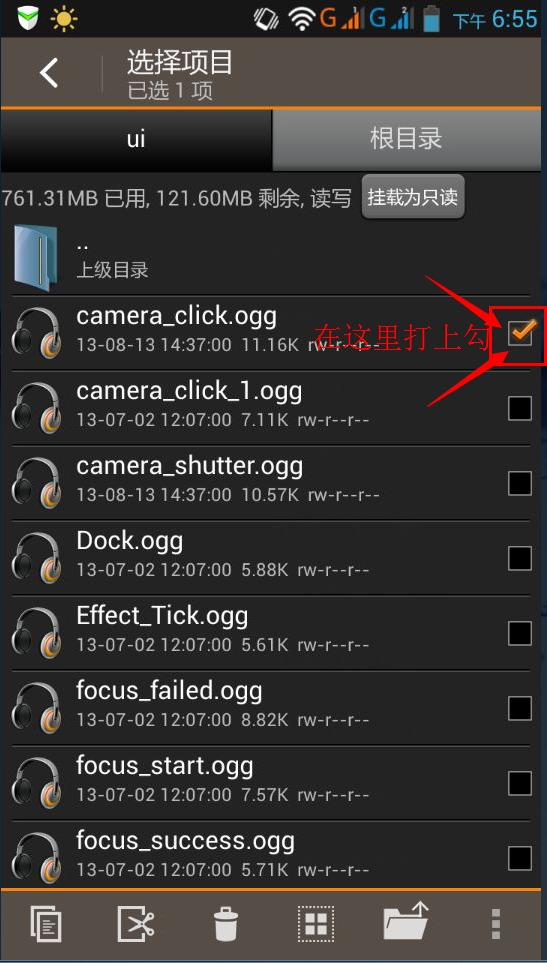 第一步用re管理器打开system/media/audio/ui/(如果提示获取权限请允许)