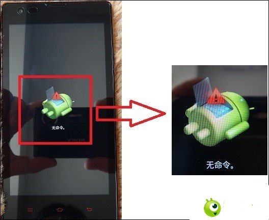 完成以上操作后,界面会显示一个安卓机器人,按一下电源键即可进入Recovery操作界面;