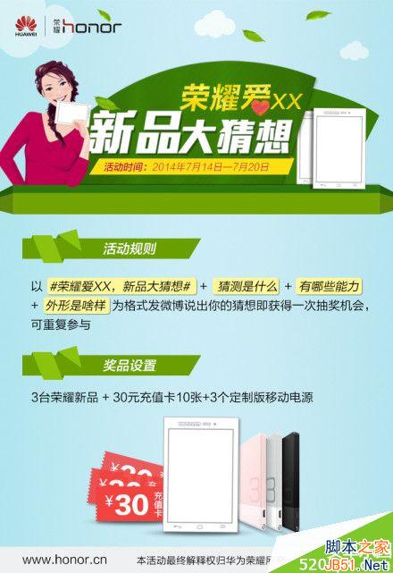 7月22日,华为荣耀又要发布新品了?新品会是什么呢?华为荣耀官方微博开展了荣耀爱xx新品大猜想活动,奖品很丰厚哦,那荣耀爱xx新品大猜想怎么参加,奖品都有什么?小编马上为大家详细介绍一下。