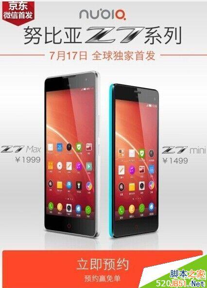 nubia Z7 Max、Z7 mini,双卡双待4G全网通,最强拍照手机今日V信首发,上午10:00准时开启发售哦!