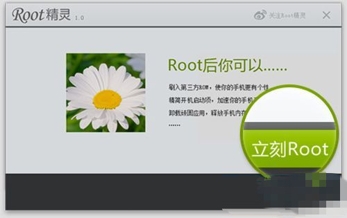 1)首先在电脑上下载一个ROOT精灵,然后把手机连接到电脑上。