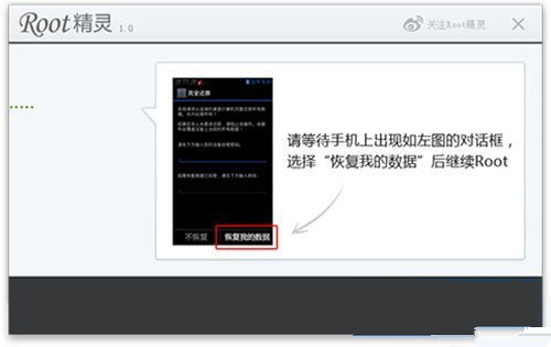 3)根据“ROOT精灵”的指示操作,在手机上点击“恢复我的数据”。