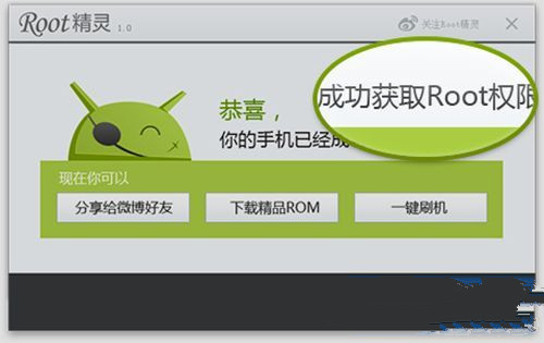 4)耐心的等待一下,直到提示ROOT成功,就代表你的手机已经获得ROOT权限了。