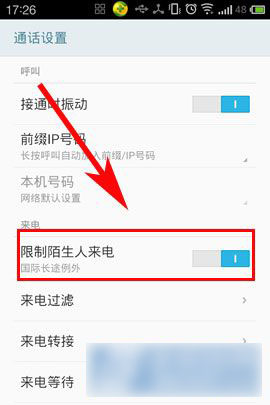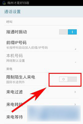 2)在设置栏界面你就会看到【限制陌生人来电】功能键,点击就设置成功了(如下图所示)