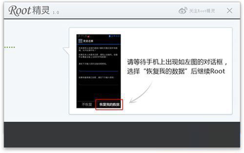 3)按照ROOT精灵的提示操作,在手机上点击“恢复我的数据”。