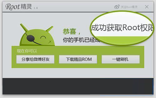 4)等待一下,直到软件提示“成功获得ROOT权限”证明ROOT是成功了。