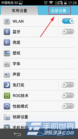1)打开华为P7【设置】,点击【全部设置】;(如下图所示)
