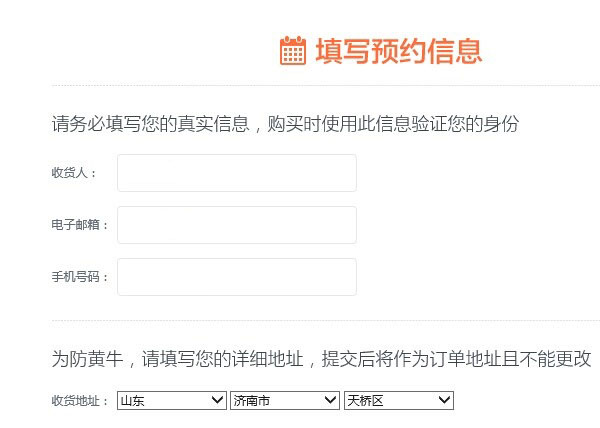 三、接下来就是填写您的预约购买信息,主要填写预约人姓名、联系电话等,如下图所示: