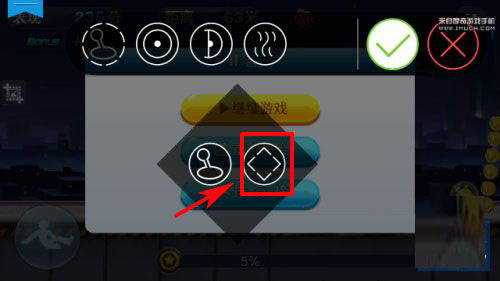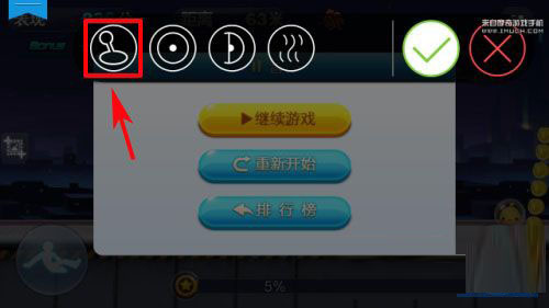 1)首先打开天天酷跑,进入游戏界面,点击“游戏暂停”按键,然后按“悬浮按钮”按键,进入游戏按键设置界面,按住“山键”将其推到跳跃处即可。