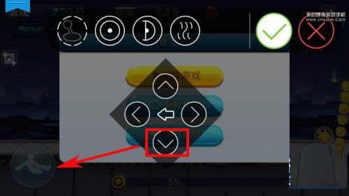 3)在进入方向界面,按住“下按键”将其拖到下滑处即可,最后点击“√”按键。