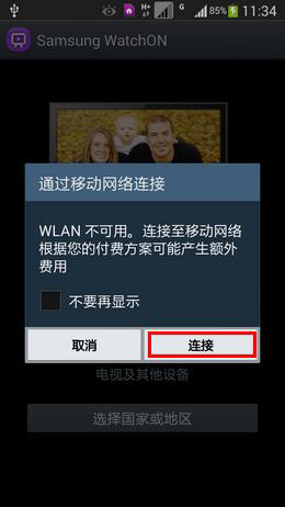 2)点击【WatchON】图标,点击【连接】。(如已连接WLAN则跳过该步)。(如下图)