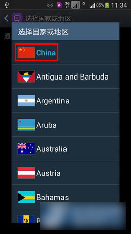 3)点击【选择国家或地区】,点击【China】。(如下图)