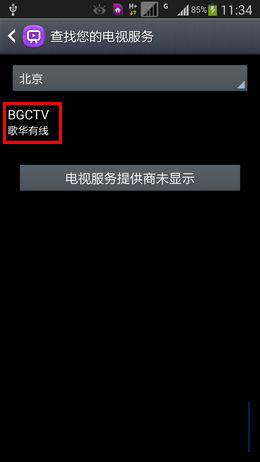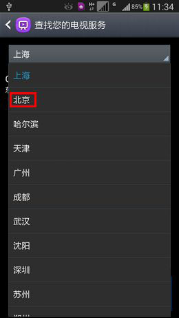 4)选择您所在的城市,这里以【北京】为例,选择城市后,确认有线电视服务商,这里以“歌华有线”为例。(如下图)