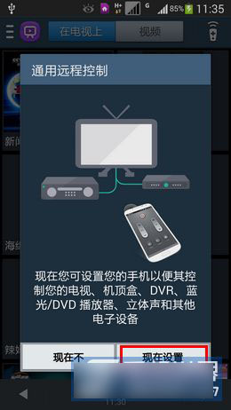 6)点击屏幕右上角的【遥控器】图标,点击【现在设置】。(如下图)