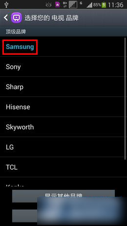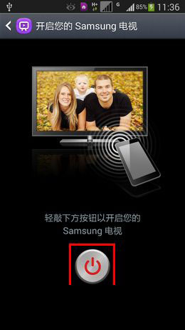 7)选择电视机品牌,这里以“Samsung”为例,单击【电源】按钮。(如下图)