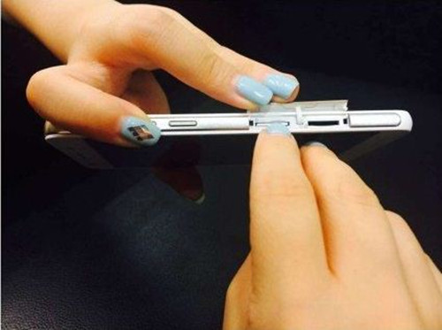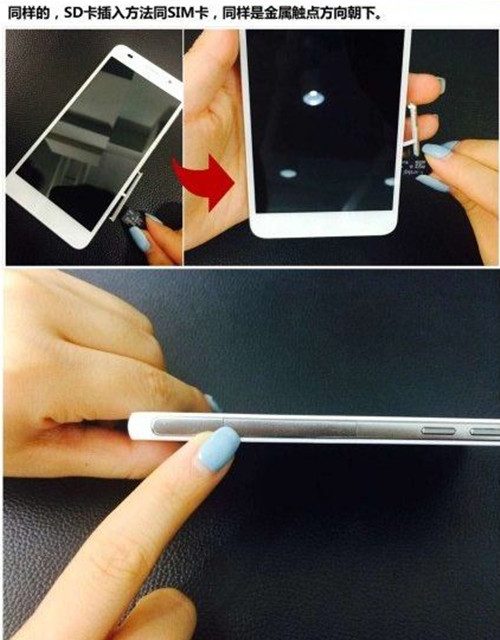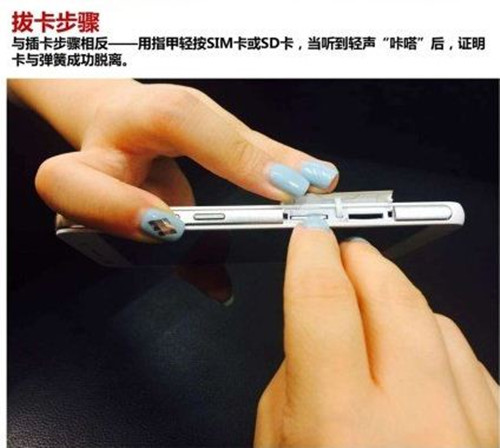 现在小编就来给大家演示一下怎么打开华为荣耀6的SIM卡槽和SD卡槽,具体过程十分简单,如图所示: