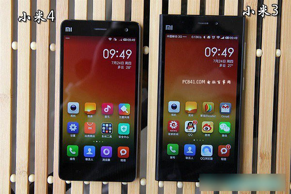 我们通过小米4和小米3边框对比一番可以明显看出,金属边框的小米4相比塑料边框的小米3外观上明显显得更高端大气,如下图所示: