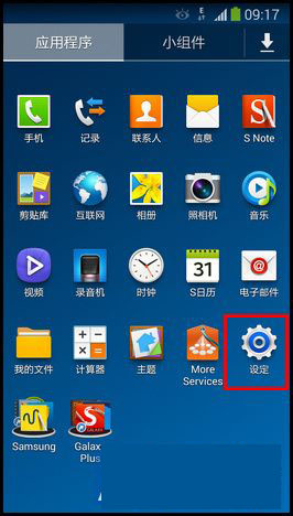 1)在待机屏幕上,点击【应用程序】,滑动屏幕点击【设定】。(如下图)