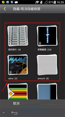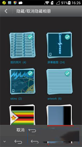 2)在进入隐藏界面,选择好自己想隐藏的相册后,在点击“完成”按键,这样华为P6的相册就隐藏成功了!