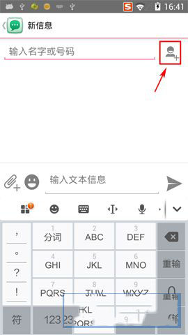 2)进入新信息界面,点击“添加”按键,然后在选择相关的联络人。