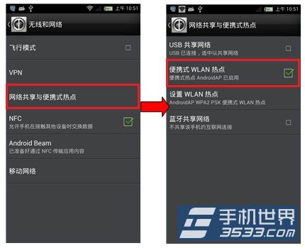 在待机屏幕选择【设置】【更多】【网络共享与便携式热点】,勾选【便携式WLAN热点】。若要变更网络名称及保护联机安全,请点选【设置WLAN热点】,完成设定之后,手机便会开始将WLAN网络名称向外广播,以供其他设备连接使用网络。