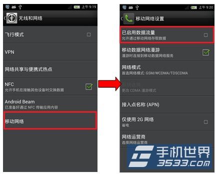 1)关闭移动网络数据连接:平时不需要手机联网时应及时关闭数据连接,避免产生不必要流量。选择【设置】→【更多】→【移动网络】,并取消勾选【已启用数据流量】选项,或者直接在通知栏的下拉菜单中点击【关闭数据业务】(如下图)