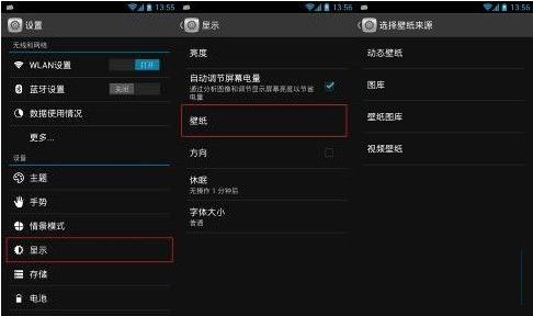 2)你也可以按照以下步骤设置壁纸。进入【设置】界面依次点击【显示】->【壁纸】