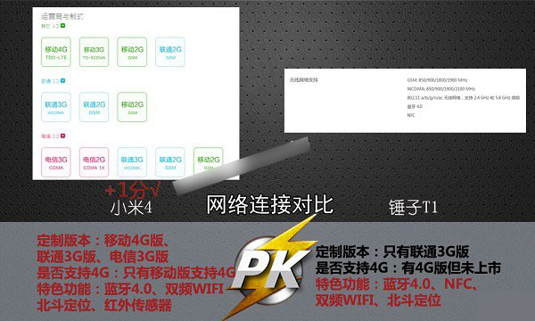 小米4和锤子手机网络支持对比