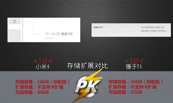 小米4PK锤子手机内存存储对比