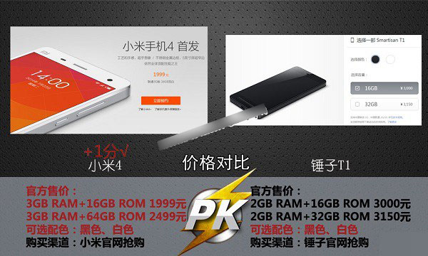 小米4和锤子手机价格对比