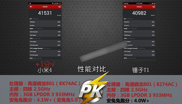 小米4PK锤子手机性能