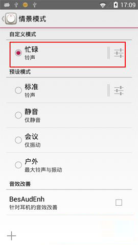 1)首先打开设置,进入设置界面,点击“情景模式”按键,进入情景模式界面后,在按“+”按键。