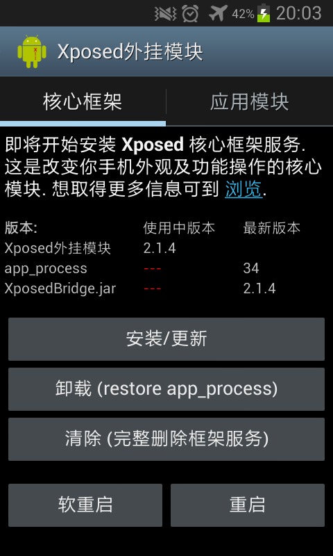 安装Xposed框架,打开Xposed外挂模块,点击安装/更新